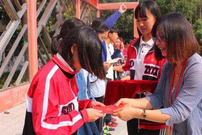 校团委书记沈蕾老师为获优秀奖的学生颁奖