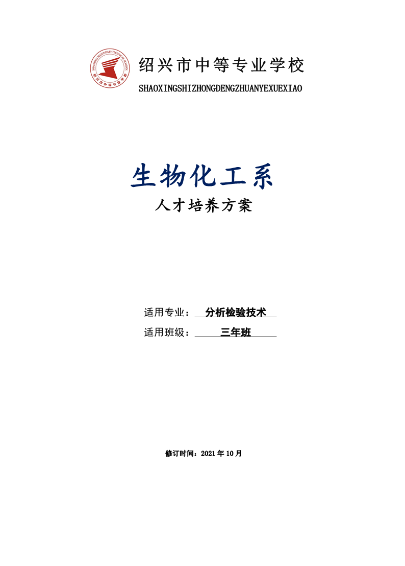 生物化工系纺分析检验技术(三年班)专业人才培养方案