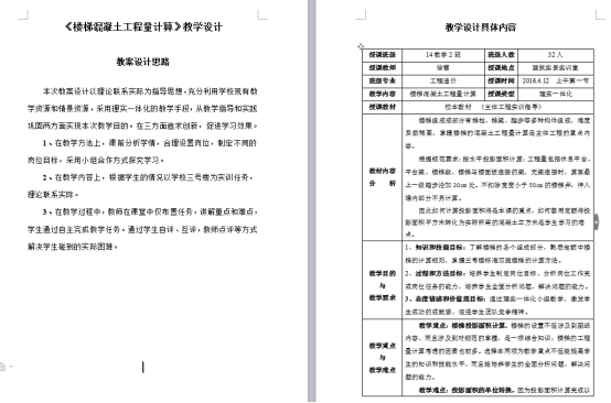 1、工程算量平面立体教学法教学设计的研究及确定:2016年3月~6月。通过教师暑期下企业,实地考察、与有经验的造价员、造价师进行访谈等形式对造价专业的现状、各分项工程的工程量计算方法,造价员所需掌握的知识和技能等进行调查,从而获得第一手资料,为工程算量教学方法的研究提供实践依据。
