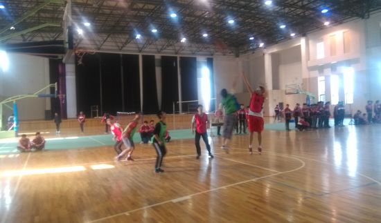 中午比赛时间还没到,我们班的参赛人员和观众就早早地在体育馆内等待篮球比赛的开始。在裁判的哨声下,激烈的比赛正式拉开了帷幕。