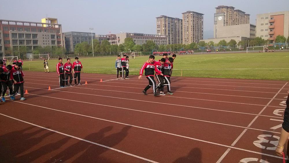 下课铃刚响,同学们早已排着整齐的队伍,准备下楼到主席台前进行“三人四足”比赛,没过多久同学们都陆续到达了比赛场地,而15机电技术2班又幸运地被抽到2号比赛队伍。为了取得好成绩,赛前班级五组同学进行了认真的练习,刚开始练习时可能因为“脚法”生疏,几乎是走一步绊一步。但在几次的联系下来。同学渐渐地掌握了出脚的节奏与技巧,动作开始慢慢地变得流畅,一点也看不出来像是只练习了几次的选手。不知不觉中,比赛枪声开始打响,15机电技术班选手犹如脱缰的野马,几十秒钟到达了终点,同时也顺利地当上了小组冠军。