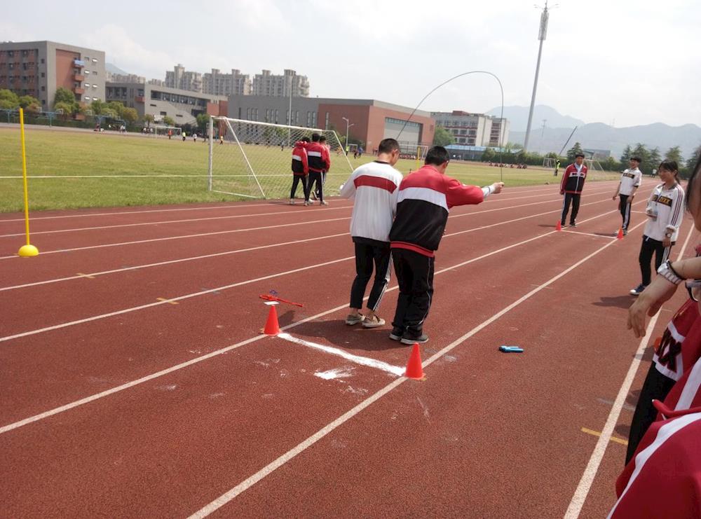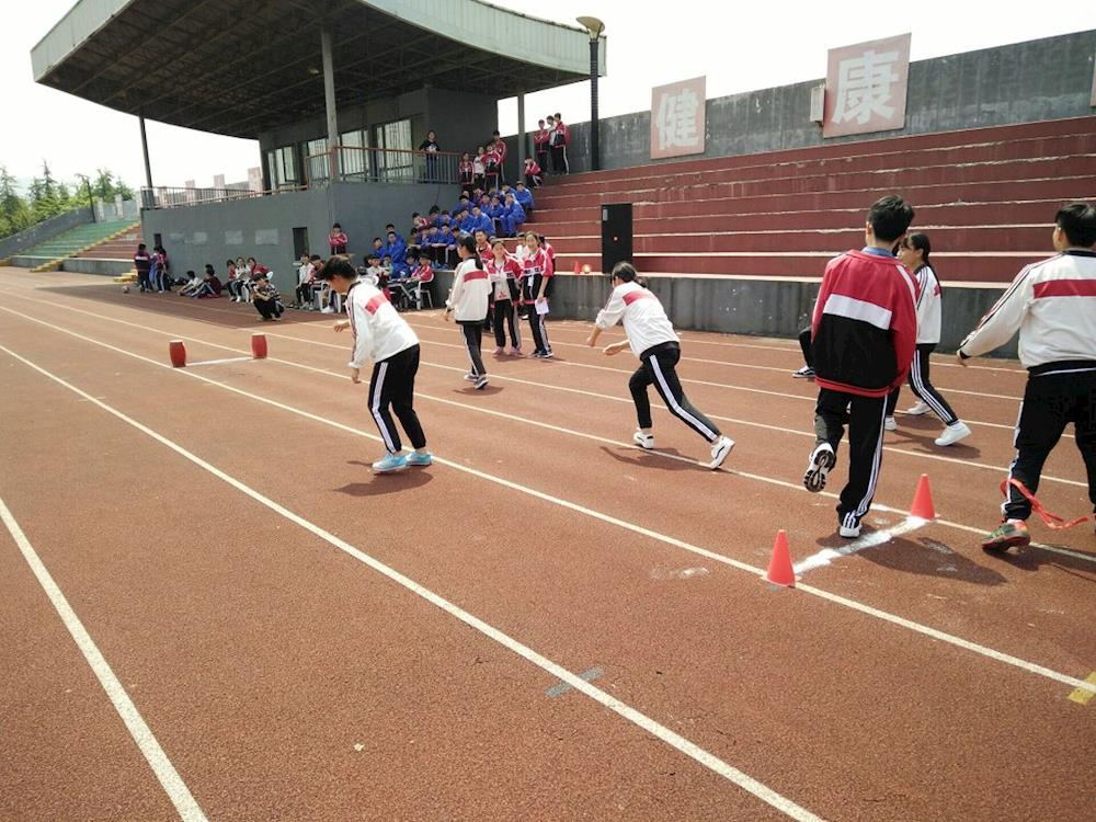 比赛还没开始,组织活动的老师就拿着装满体育用品的袋子在操场上布置赛场,观众席上不断有学生入座。在比赛的候场区,参赛班级的学生按抽签顺序整齐有序地排成几列,等待比赛开始,整个赛场井然有序。