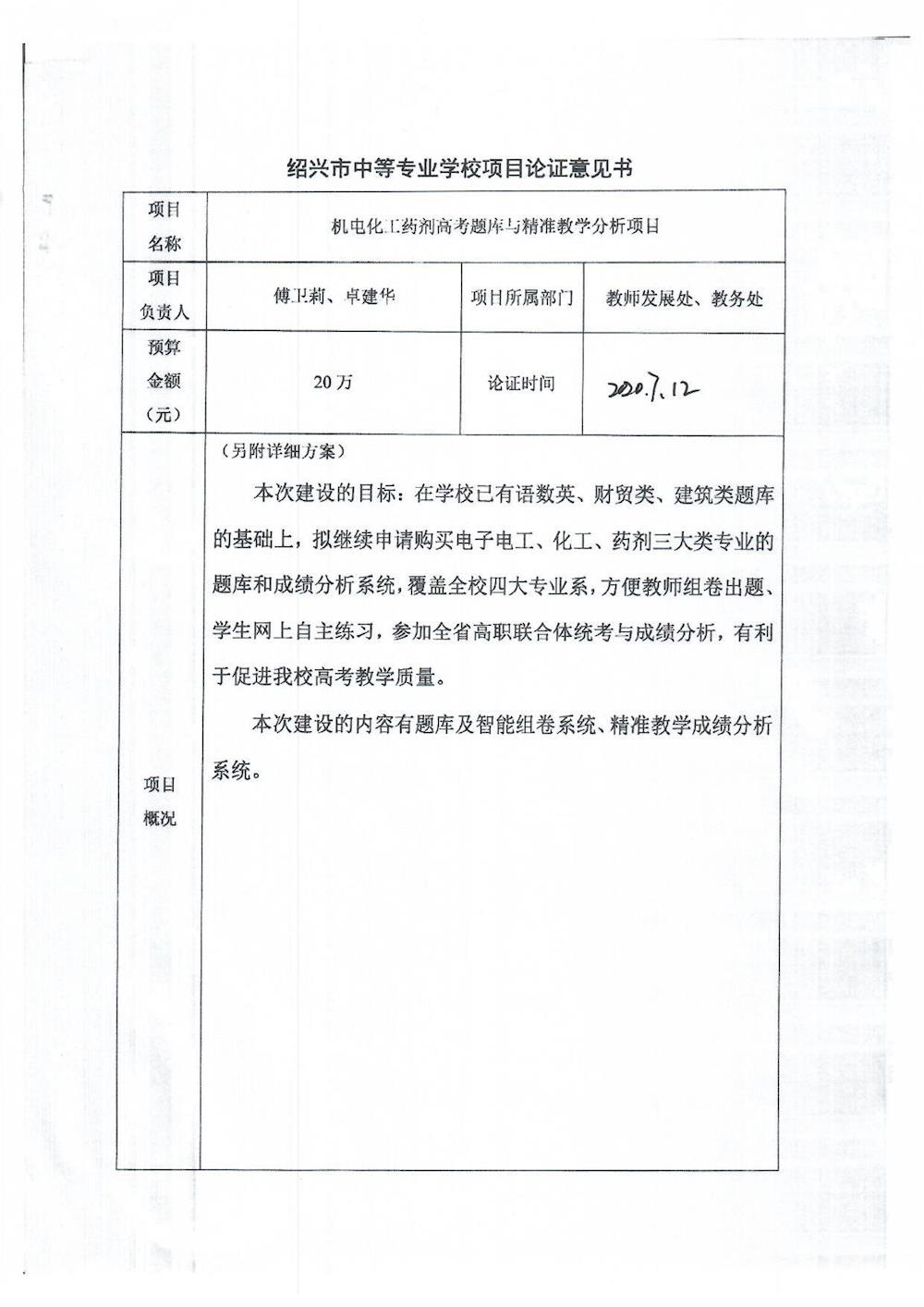大赢家官网【机电化工药剂专业高考题库与精准教学分析系统】项目的论证结果公告