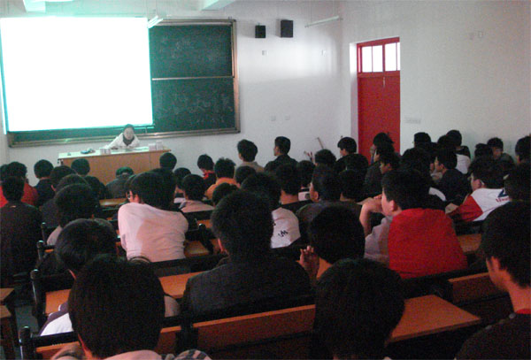 潘老师的讲座深入浅出地从为什么要润滑,润滑的重要性与作用开始,逐步引入到润滑油脂的分类与选用原则、管理与维护保养规程。在讲到“汽车润滑保养”的例子时,有兴趣的男同学个个伸长了脖子,所有目光都聚集在投影屏幕上。在教学生识别润滑油广告应对比的技术指标时,讲者精神十足,听者津津有味。