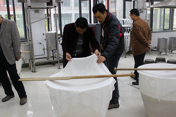 代表们了解黄酒酿造工艺流程