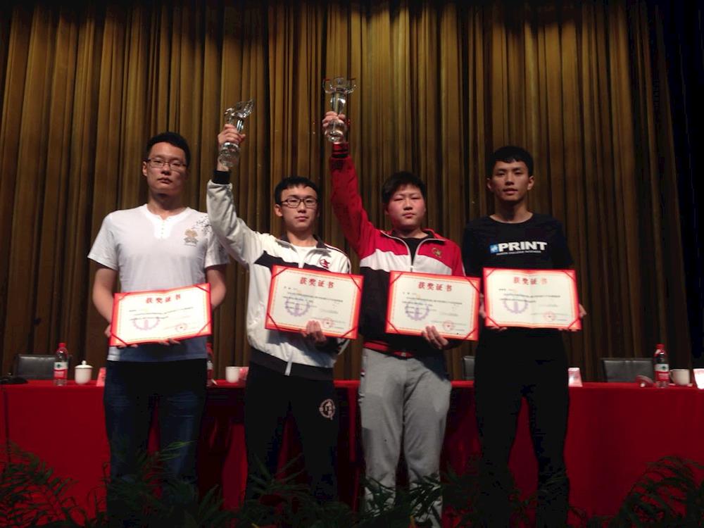 指导教师钱瞫初、徐浙明与学生同台领奖