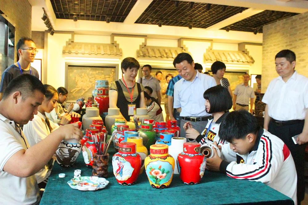 傅书记观看黄酒花雕工艺