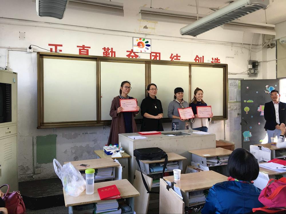 站在领奖台上,手捧着鲜红的荣誉证书,但是他们灿烂的笑容掩盖不住背后的艰辛。为了能够参加此次市级说课比赛,两位老师历时两个月不眠不休的进行准备,撰写教学设计、说课稿,制作课件,不断试讲、修改、润色。先是在学校内部进行选拔,然后参加市属级教师说课比赛,在强手如云的赛场上,脱颖而出,拿到了进入市赛的入场券。