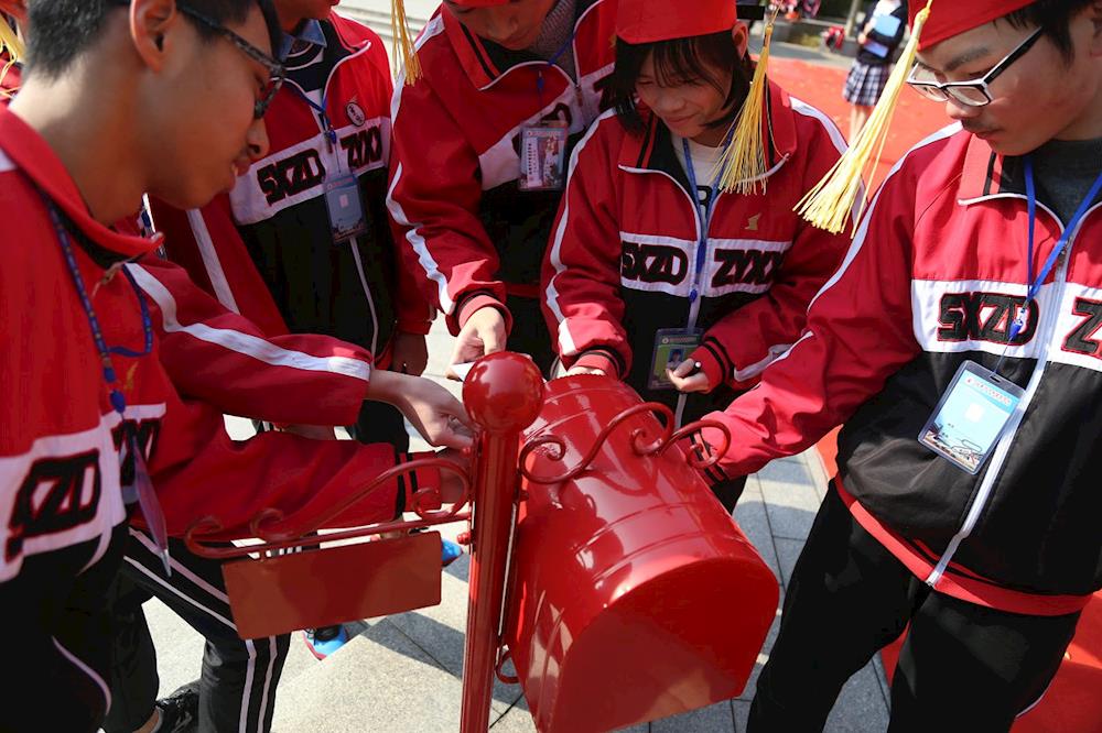 12月13日,在美丽校园的一隅,由校团委、高考升学系主办“快乐星期二”成人仪式活动,吸引了全校师生驻足观看。