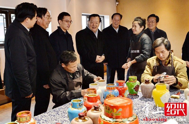 近日,绍兴中专黄酒专业的潘丽莉老师和她的学生的花雕工艺、彩泥堆塑作品火了!不仅在他们开办的淘宝网店和微商平台上订单连连,而且还入驻了绍兴黄酒小镇的黄酒博物馆花雕楼。 1月 12日 ,省委书记、省人大常委会主任夏宝龙等领导一行调研了黄酒小镇,在参观花雕楼时,夏书记对潘老师师生的花雕工艺作品给予了高度的赞扬和肯定,让这群国家级民族文化传承与创新专业的师生们再次火了一把。