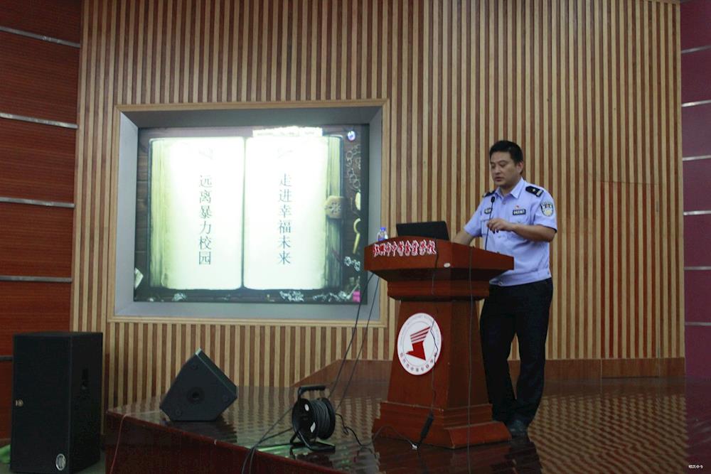 晚上, 新受聘的讲师团成员——城南派出所副所长金扬 在和畅报告厅为全体住校男生作了关于如何“预防校园暴力”的专题讲座。