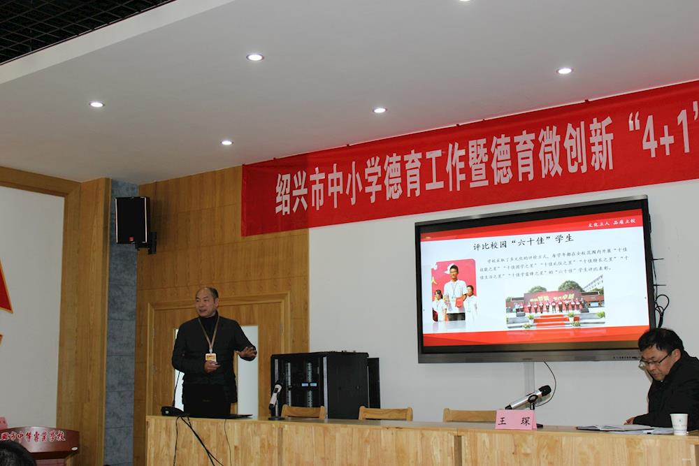 12月21日,绍兴市中小学德育工作暨德育微创新“4+1”活动推进会在大赢家官网举行。本次会议由绍兴市教育局基教处主办,大赢家官网承办。市直学校党委书记、德育工作分管副校长,各县、市(区)教育局分管领导、基教科长及中小学校德育工作分管校长代表等90余人参加会议,会议由绍兴市教育局基教处王琛处长主持。