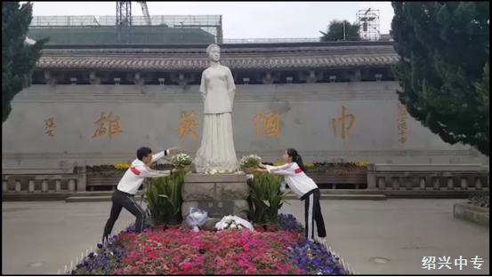 在秋瑾烈士像前,沈滨老师宣布 “清明时节祭忠魂” 主题活动 开始! 活动在浓烈的爱国情怀中拉开序幕,“ 烈士们用鲜血染红了国旗的颜色,用自我的身躯筑起了万里长城。请相信你们的后代会踏着你们的足迹,珍惜时光,从小事做起,勤奋好学,诚信守纪,开拓进取,培养优秀的品德,锻炼强健的体魄,努力成为社会有用之材,准备为建设完美家园贡献自我的智慧和力量。 ” 学生代表向秋瑾烈士像敬献鲜花, 随后 全体师生 集体默哀三分钟 ,表达哀思 。