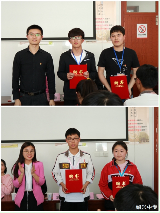 在启动仪式上,浙工院 机械工程学院团委向 我校王龙飞与童琳慧两位同学颁发团委委员聘书;我校团委向浙工院金佳铭 等 两位同学颁发聘书。