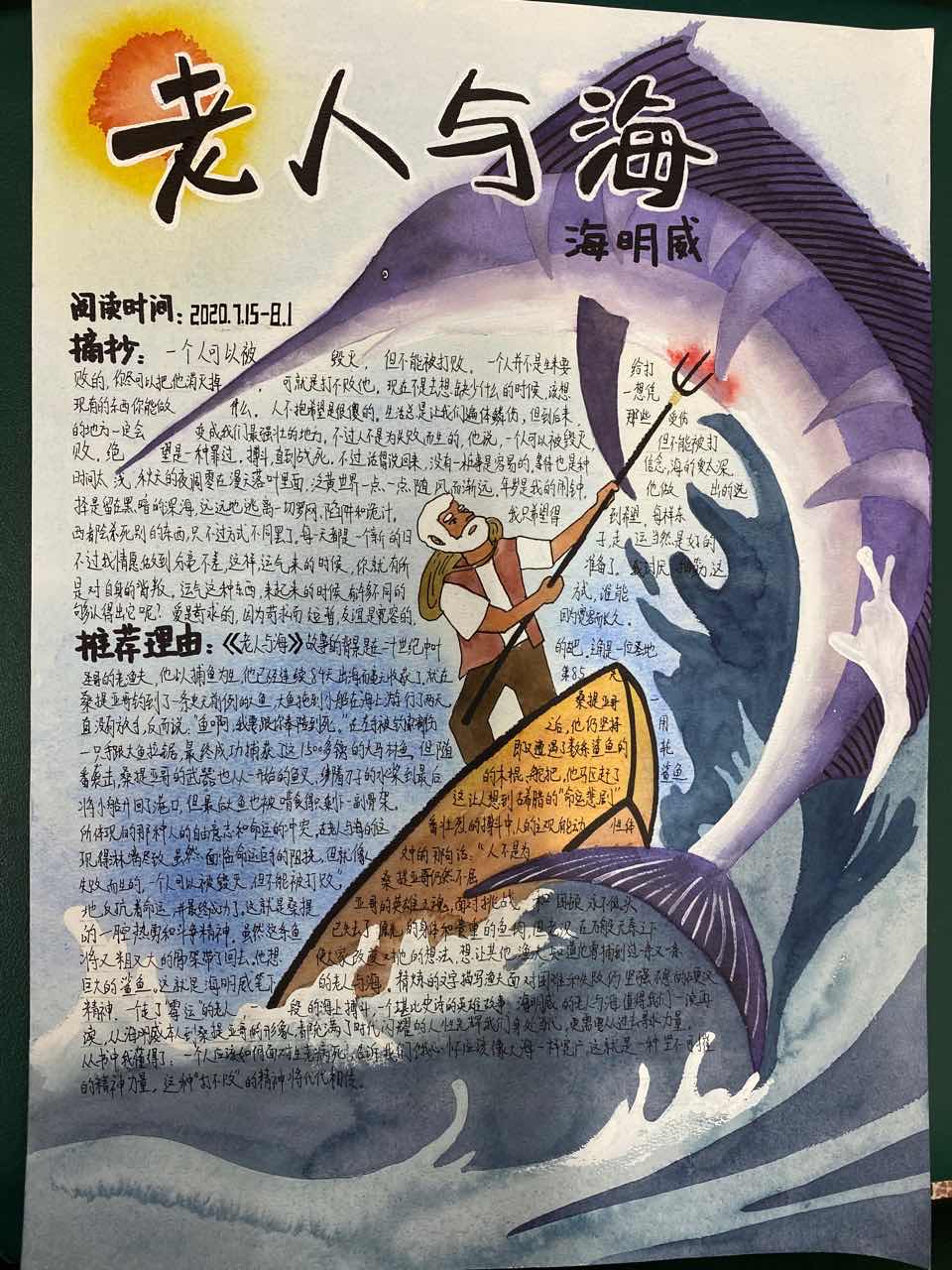 在同学们的认真构思之下,众多优秀的作品纷纷踊跃出来。这些作品主题鲜明,构思精巧,色彩艳丽,充分体现了学生的才华和创作能力。或是绘图逼真,内容深刻的《浮士德》,或是浓墨重彩的《呼兰河传》,或是仿佛能让人感受到澎湃海浪的《老人与海》。每一张海报,都体现着同学们的精思细想。各语文教师们也感受到了同学们的认真,纷纷为他们打下了代表肯定的分数。